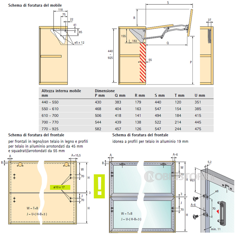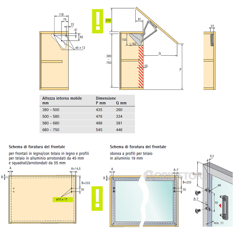 Per ogni tipologia, è previsto lo stesso schema di foratura.