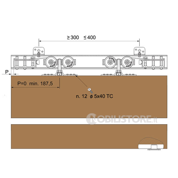 Sistema scorrevole 0850 per portate fino a 250 kg e caratterizzato da robustezza e resistenza alla corrosione.