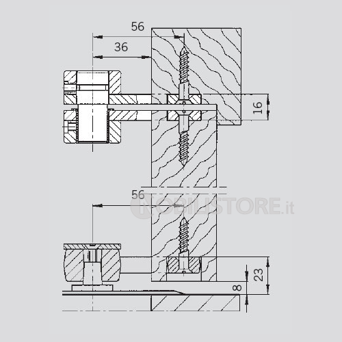 Cardine superiore Dorma 7411 K/56 per porte a battente