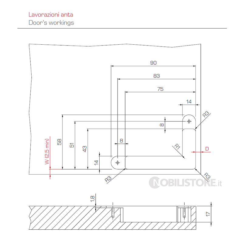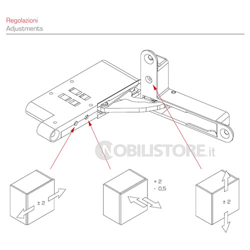 Regolazioni: verticale +/-2; profondità +2/-0,5; orizzontale +/- 2