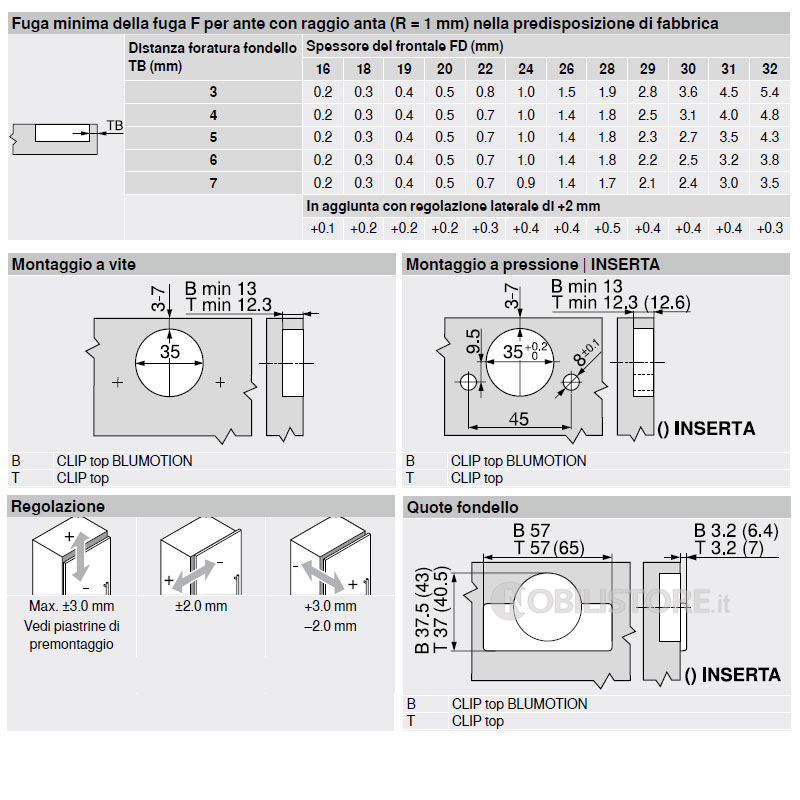 CLIP top BLUMOTION con BLUMOTION integrato (con disattivazione)