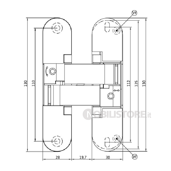- Portata: 40 kg (peso max porta con l'impiego di 2 cerniere, dimensione porta L 900 mm, H 2100 mm)