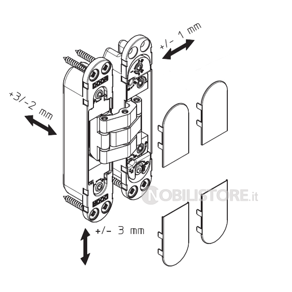 Regolazione 3D: laterale +/-1 mm, in altezza +/-3 mm, in profondità +3/-2 mm