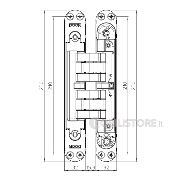 Portata: 200 kg (peso max porta con l'impiego di 2 cerniere, dimensione porta L 900 mm H 2100 mm spessore 40 mm)