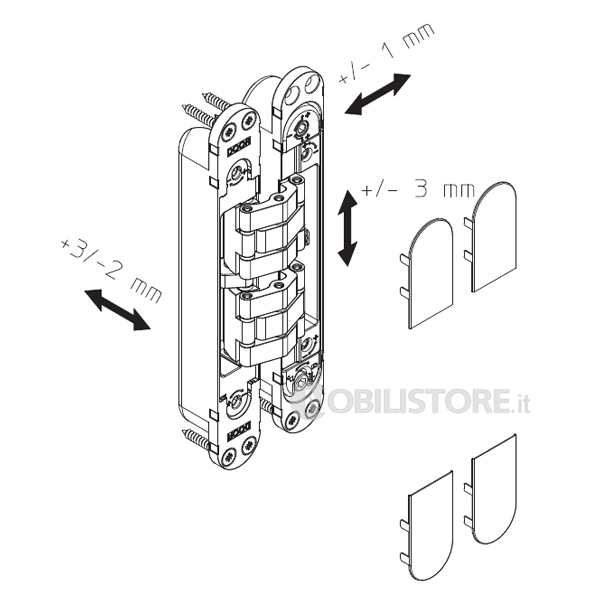 Regolazione 3D: laterale +/-1 mm, in altezza +/-3 mm, in profondità +3/-2 mm