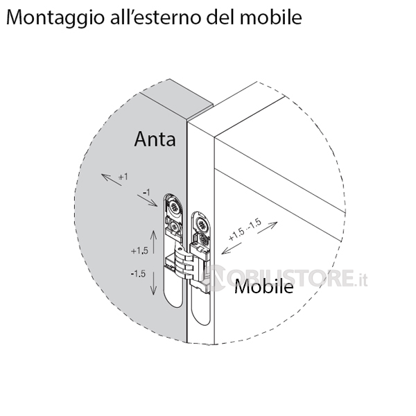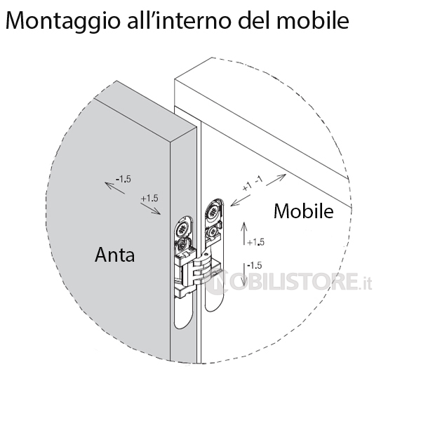Regolazioni 3D: Orizzontale(X) +/-1,5 mm, Profondità (Y) +/-1,0 mm, Verticale (Z) +/-1,5 mm