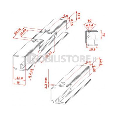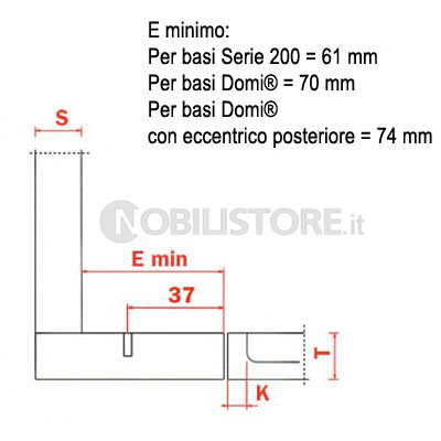 Serie per Profili Metallici - Controcollo per fianchi con foratura standard 37x32 mm. - Apertura 105°