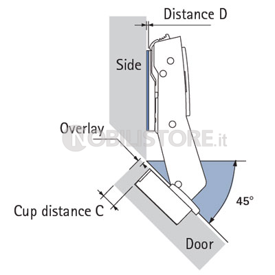per mobili ad angolo, angolo di apertura di 95°