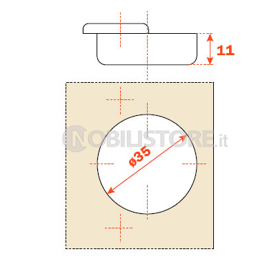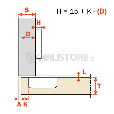 Possibilità di foratura dell’anta “K” da 3 a 6 mm