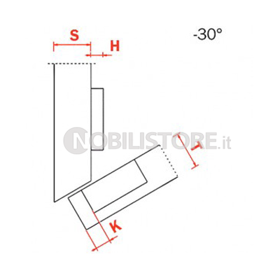Cerniera Salice Serie 200 complementari - Per ante in legno con montaggio ad angolo negativo Apertura 120°