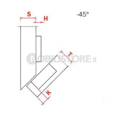 Cerniera Salice Serie 200 complementari - Per ante in legno con montaggio ad angolo negativo Apertura 120°