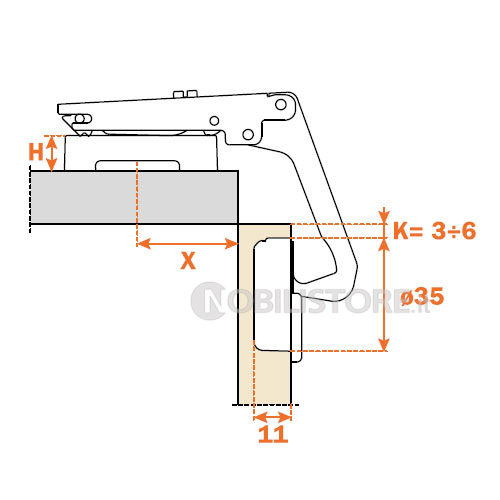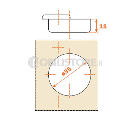 Controcollo per fianchi con foratura standard 37x32 mm Apertura 94°