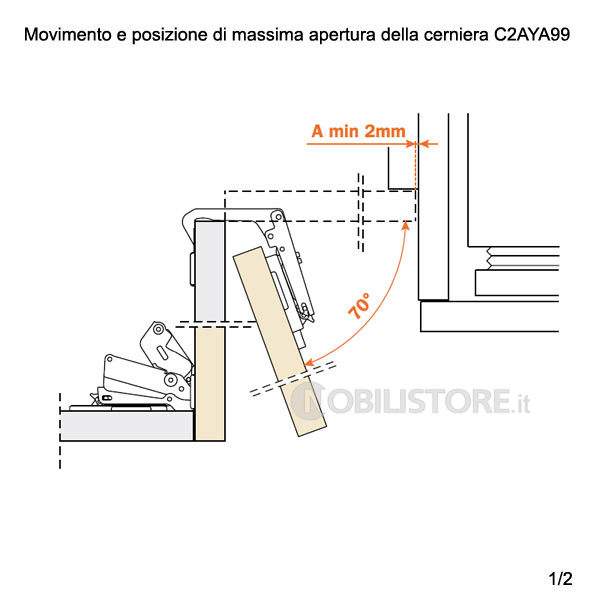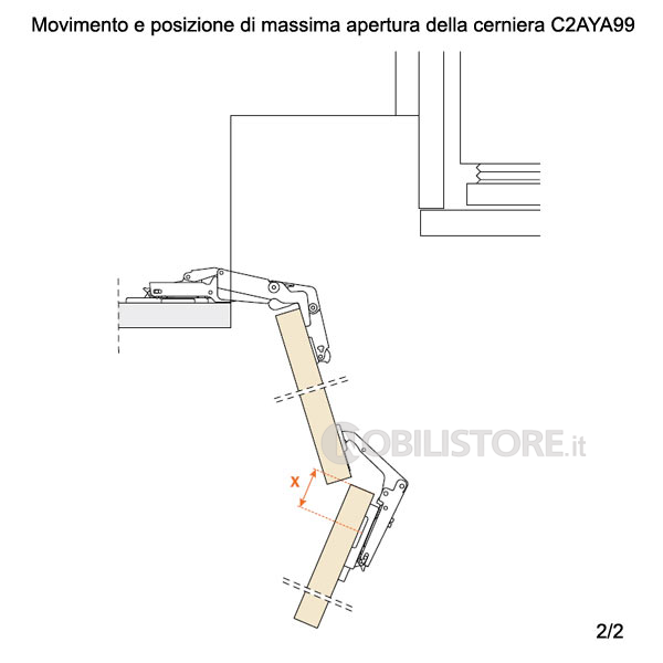 Per ante in legno con montaggio ad angolo positivo Apertura 94°