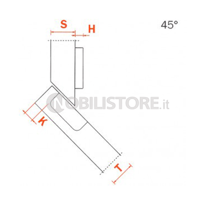 Cerniera Salice Serie 200 complementari - Per ante in legno con montaggio ad angolo positivo Apertura 94°