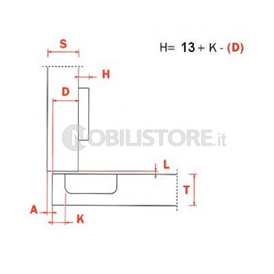 Controcollo per fianchi con foratura standard 37x32 mm Apertura 94°