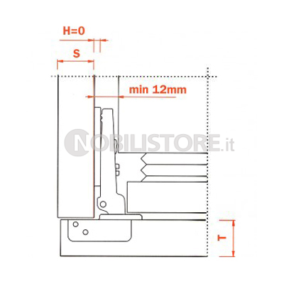 Per ante in legno con montaggio ad angolo positivo Apertura 94°