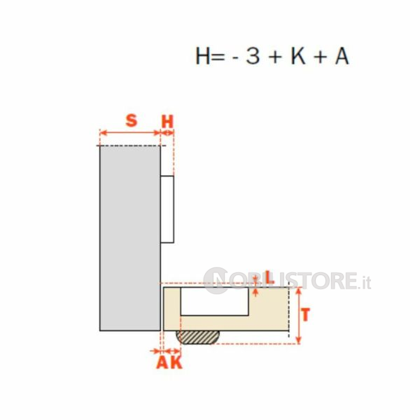 Possibilità di foratura dell'anta "K" da 3 a 15 mm