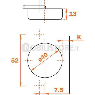 Possibilità di foratura dell'anta "K" da 3 a 15 mm