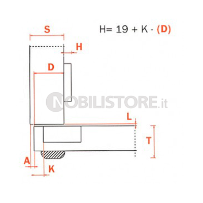 Possibilità di foratura dell'anta "K" da 3 a 15 mm