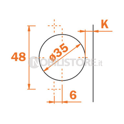 Possibilità di foratura dell’anta “K” da 3 a 18 mm