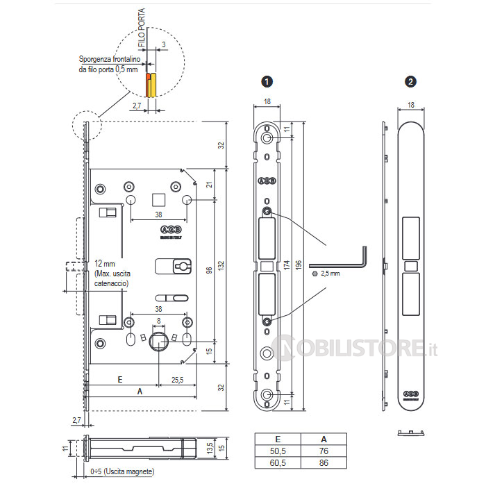 Touch bagno è dotata di frontalino di copertura delle viti di fissaggio e azionando il quadro bagno esce un catenaccio centrale con uscita variabile a molla.
