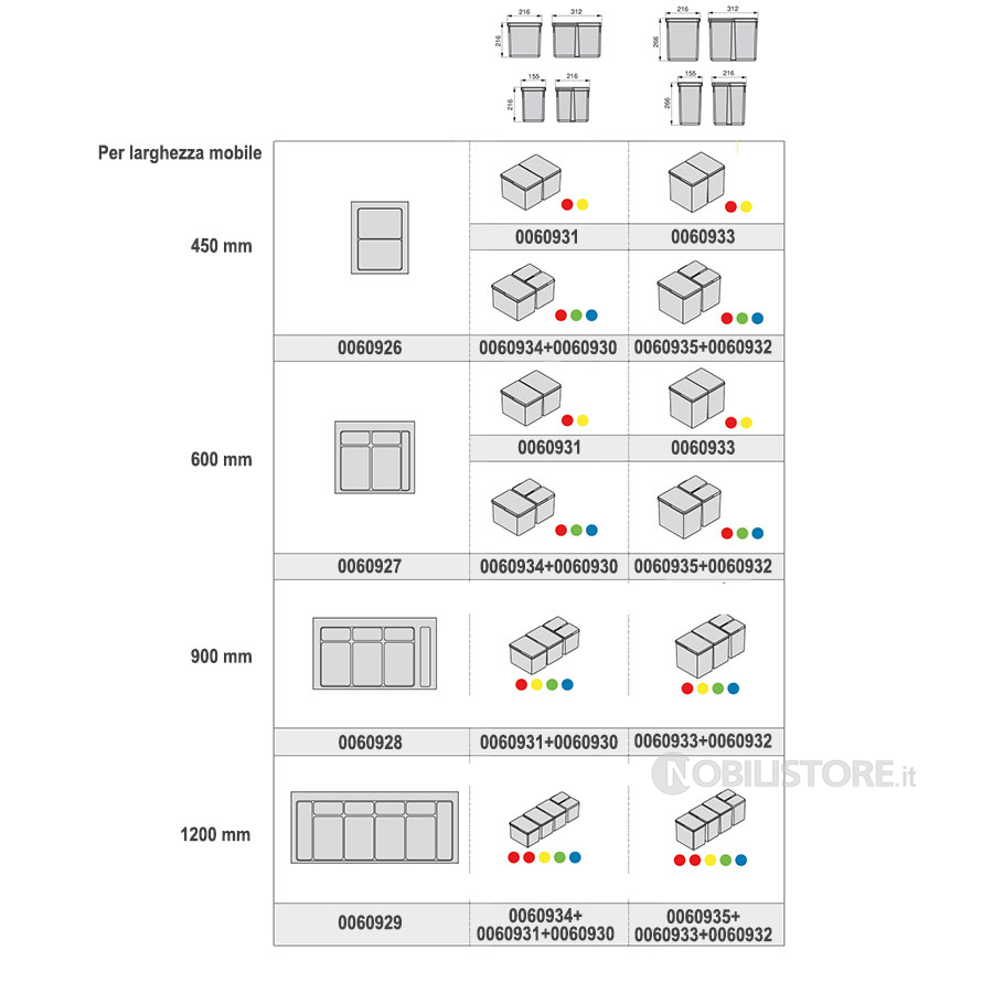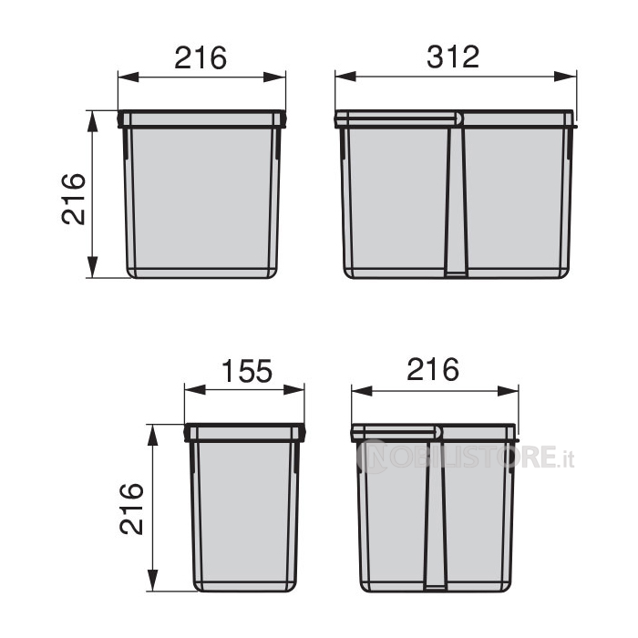 Dimensione contenitore in altezza 216 mm
