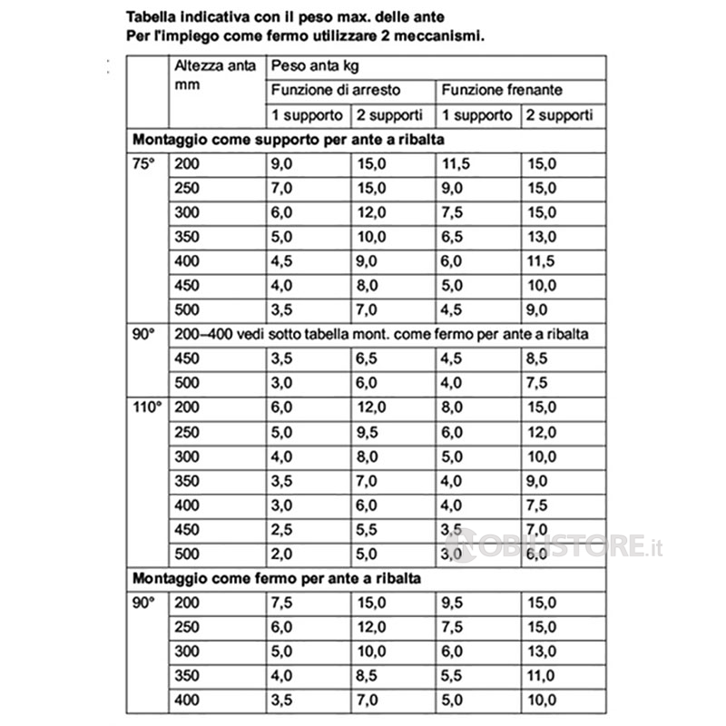 Per l'utilizzo come fermo per anta a ribalta verso il basso utilizzare sempre 2 supporti.