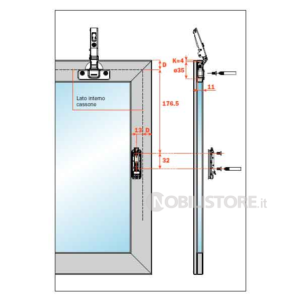 Ante di altezza da 570 a 940 mm, peso anta da 3 a 16 kg