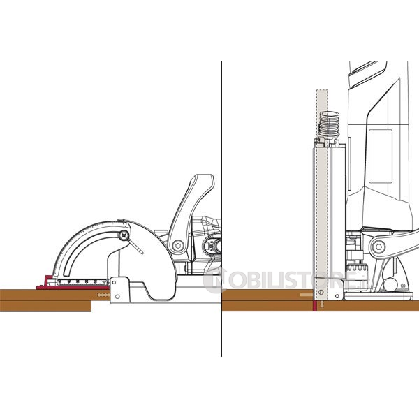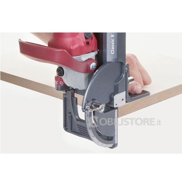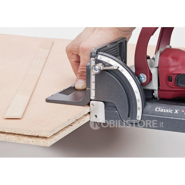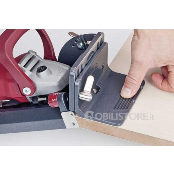 Posizionabile sulla piastra di base per creare uno stabile appoggio nell‘uso verticale Per una perfetta giunzione ad angolo con materiale di diverso spessore