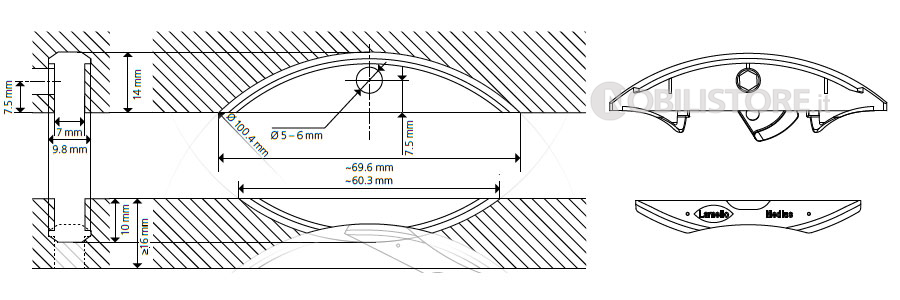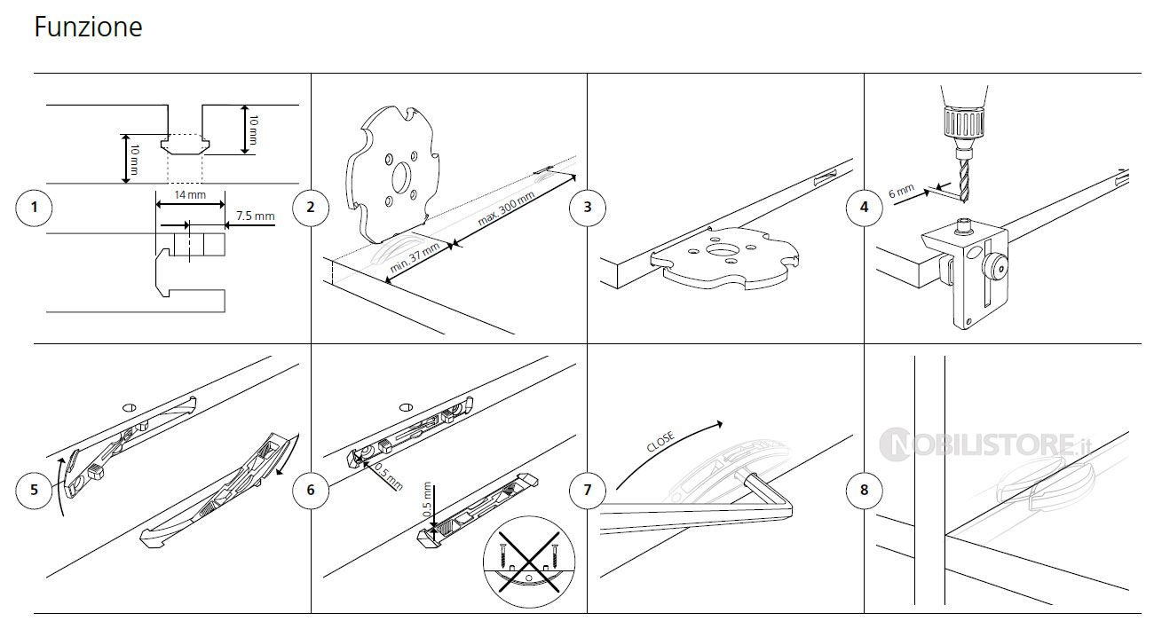 Grazie alla ridotta profondità di montaggio di 10 mm, lo spessore minimo per il pannello centrale è di 16 mm.