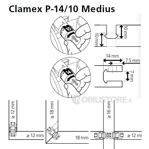 Giunto Lamello Clamex P-14/10 Medius - Elemento di giunzione smontabile per divisori centrali con spessori a partire da 16 mm