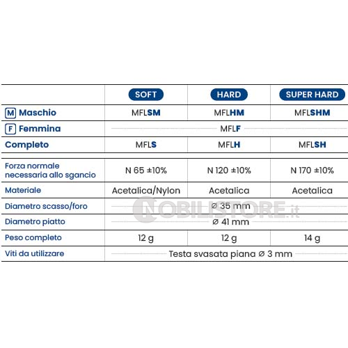 Materiale: MFLS Acetalica/Nylon - MFLH e MFLSH Acetalica