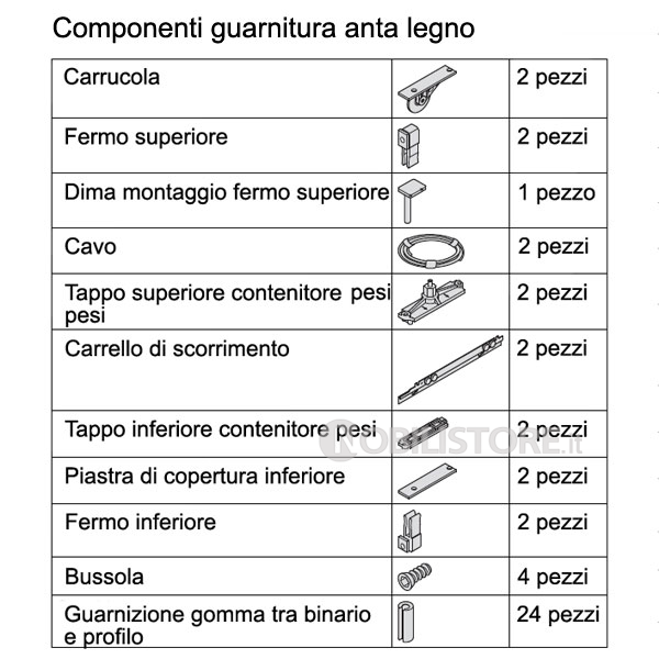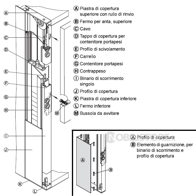 GAMMA - Sistema di scorrevole per anta singola a movimento verticale con contrappeso