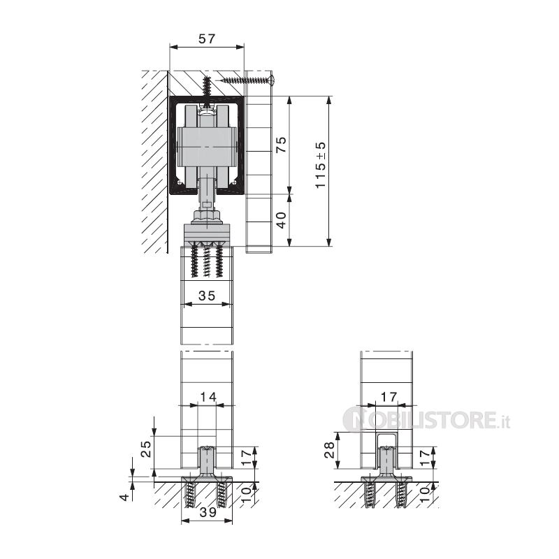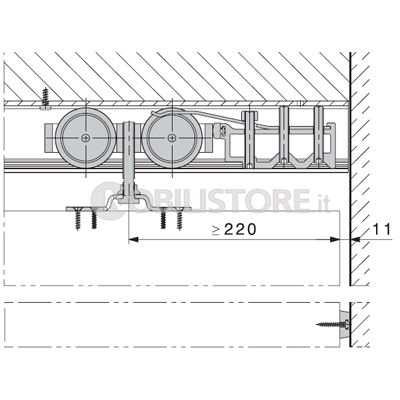 Corredo ferramenta per 1 porta scorrevole, senza binario