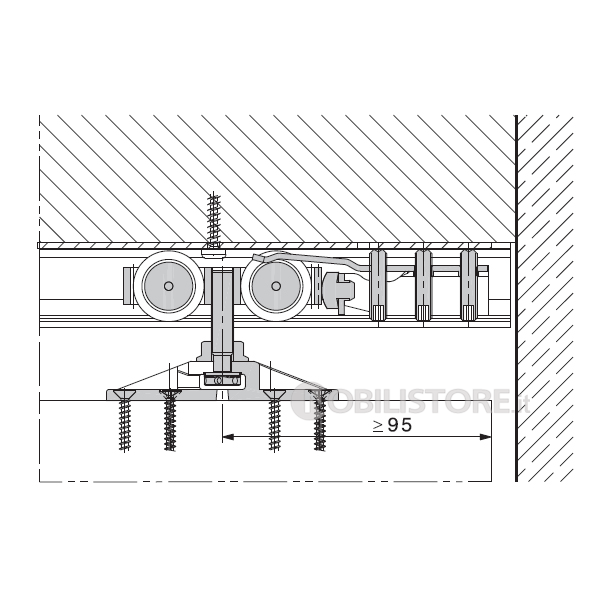 La sospensione a due vie permette il montaggio dell'anta con inserimento laterale o frontale.