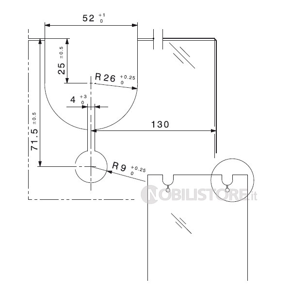 • Spessore vetro porta scorrevole ESG 8/10/12/12,7 mm