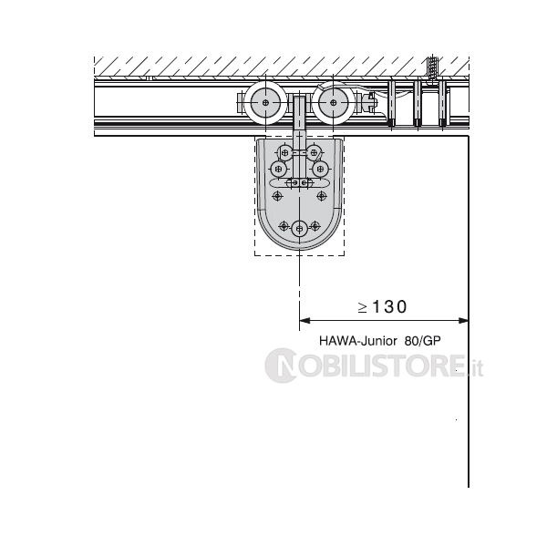 Guarnitura HAWA-Junior 80/GP per una porta scorrevole in cristallo fino a 80 kg