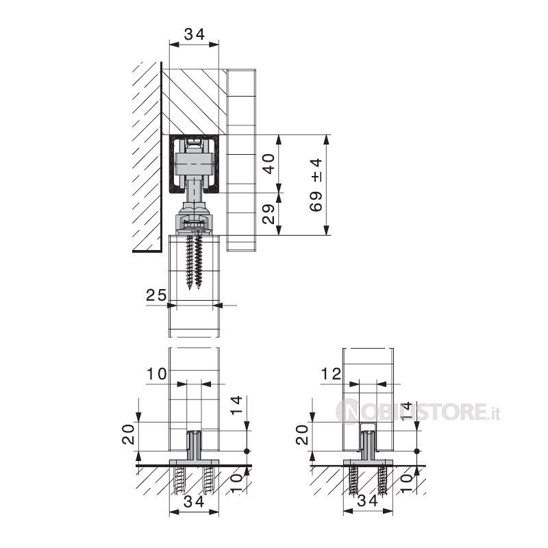 Corredo ferramenta per 1 porta scorrevole, senza binario