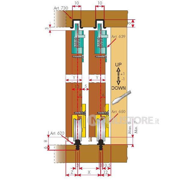 - Binari di scorrimento e guida separati, quindi nessuna limitazione negli spessori anta