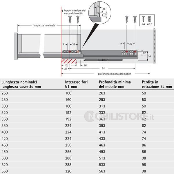 Flessibilità grazie al sistema intercambiabile - possibilità di montare sia guide Quadro a estrazione semplice sia a estrazione totale, senza dover modificare le dimensioni del mobile, del cassetto e del frontale!