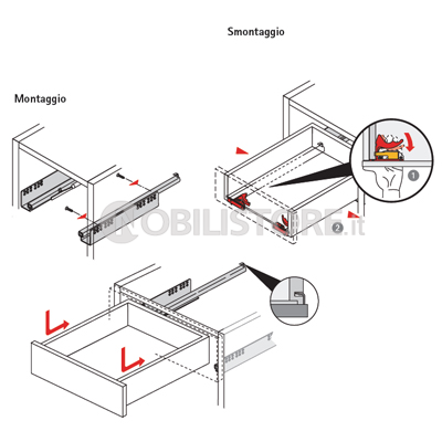 Montaggio a scorrimento - il cassetto viene appoggiato sui binari di guida e quindi introdotto all'interno