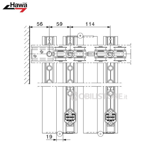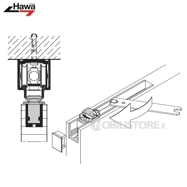 HAWA-Variofold 80/H, ferramenta per pareti a libro in legno fino a 80 kg di peso porta.