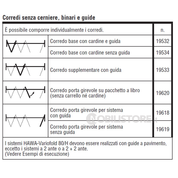 I sistemi HAWA-Variofold 80/H devono essere realizzati con guide a pavimento, eccetto i sistemi a 2 ante o a 2 + 2 ante.