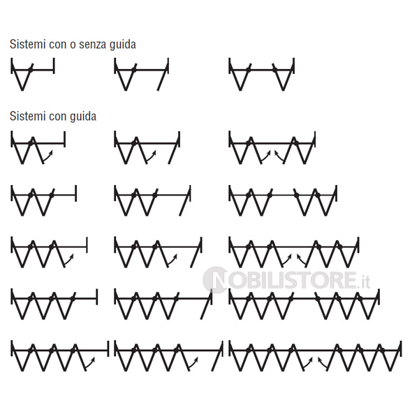 Con i corredi base a 2 ante, i corredi supplementari e i corredi porta girevole sono possibili solo sistemi unilaterali con quota luce fino a 6000 mm.