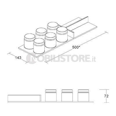 Inserto portaspezie V1N, accessorio con barattoli in vetro dove riporre spezie, sali o alimenti di piccole dimensioni.