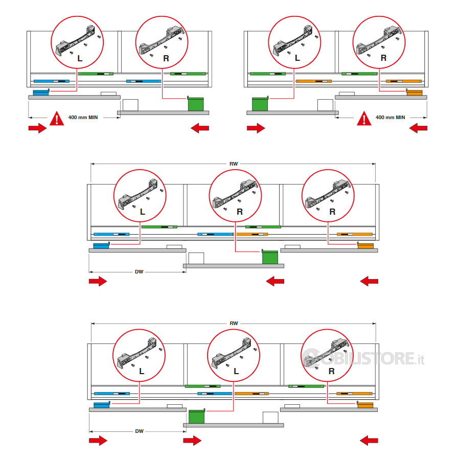 • Sistema di scorrimento tradizionale per armadi con ante non complanari