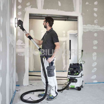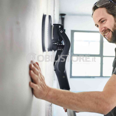 Per un lavoro ergonomico su pareti e soffitti, la dotazione comprende aspirazione regolabile, lunghezza di lavoro variabile e l’intelligente impugnatura a T, per una conduzione agevole anche negli impieghi prolungati.