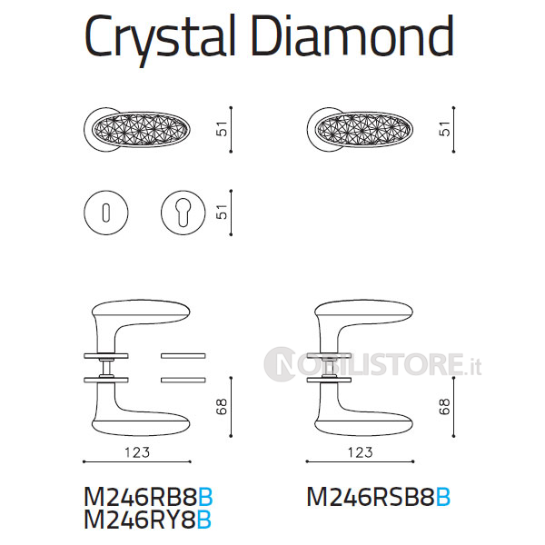 Coppia maniglie per porta Crystal Diamond M246 B rosette e bocchette "basse"