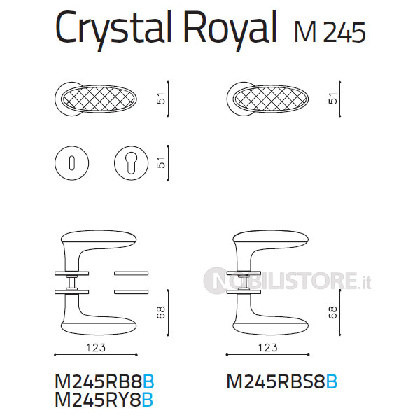 Coppia maniglie per porta Crystal Royal M245 B rosette e bocchette "basse"