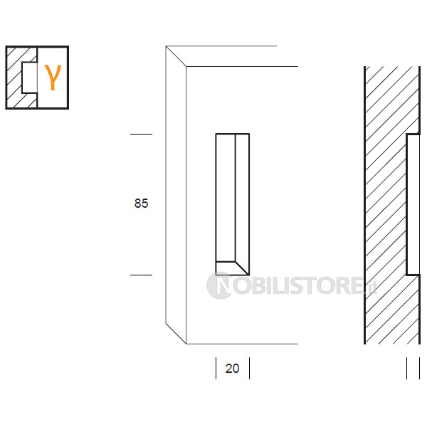 Placca con maniglia ad incasso per porta scorrevole